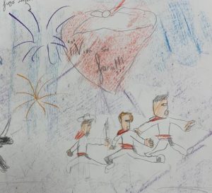 - Invención de Peñas entre los niños y niñas del campamento y confección de pancartas de las Peñas.